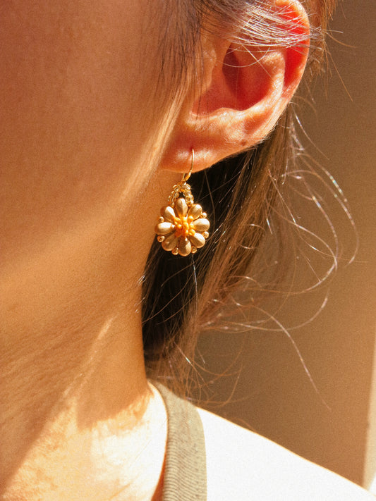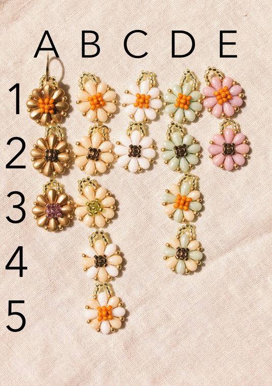 Customized Beaded Daisy Earrings, Pick a Color and Style: French Wire or Hammered Hoops, 14K Gold Fill