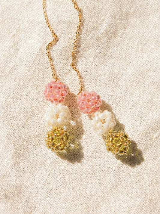 🍡Petit Dango (団子) Beaded Earrings, Pick a Style: Ear Threaders or Hammered Hoops, 14K Gold Fill
