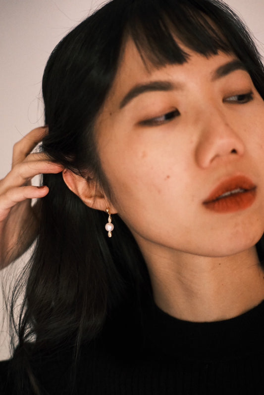 Sybbie Earrings, AAA Freshwater Pearl and Twist Bead on Ball Post, 14K Gold Fill