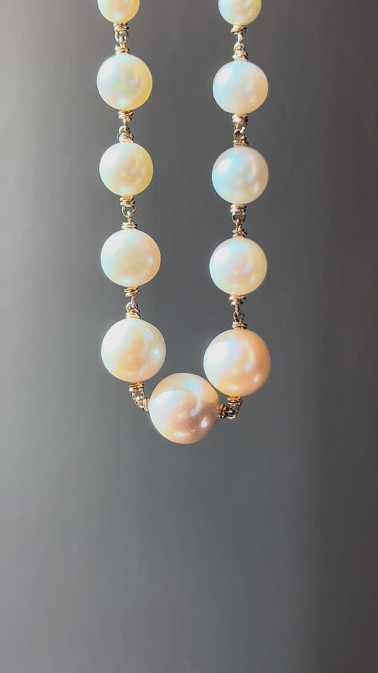 Graduated White Round Pearl Choker Necklace, 14K Gold Fill