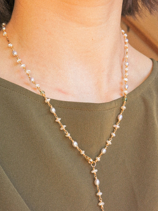 Multi-Gemstone 4-way Delicate Necklace with Prehnite, Pearl, Aquamarine, and Zircon