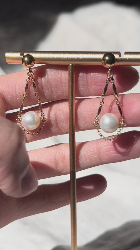 Sybbie Earrings, AAA Freshwater Pearl and Twist Bead on Ball Post, 14K Gold Fill