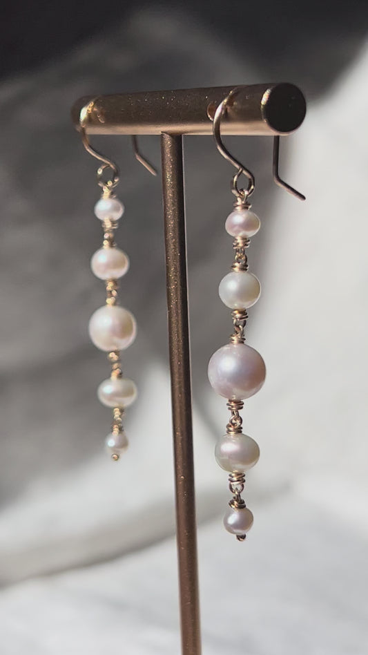 Graduated White Pearl Cascading Earrings #2, 14K Gold Fill