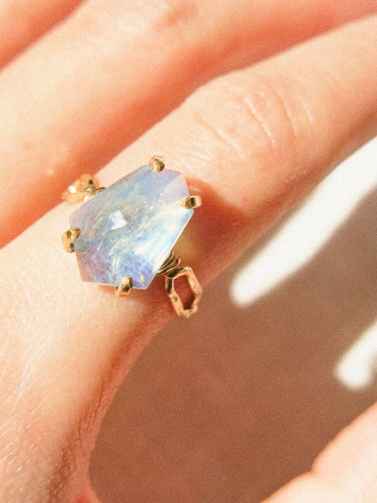 AAA Rainbow Moonstone prong set solitaire ring in 14K gold fill, size US 5.75, June birthstone, alternative engagement ring, moonstone ring