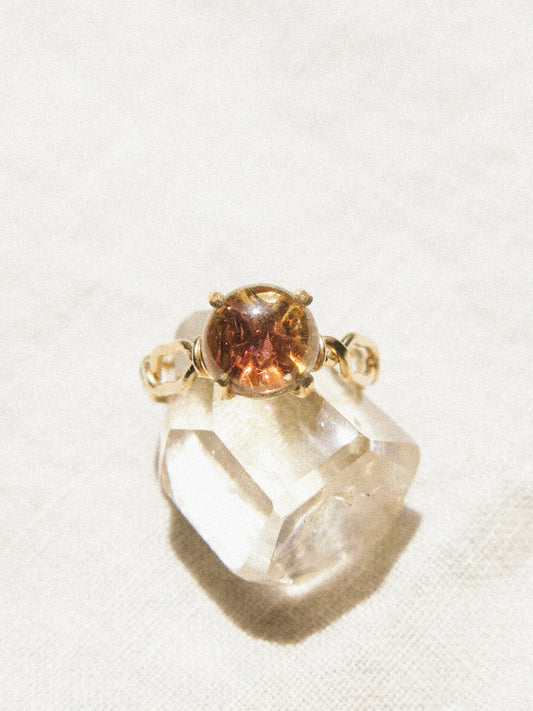 Natural bicolor peach pink round Tourmaline prong set solitaire ring in 14K gold fill, size US 6.5, October birthstone, engagement ring
