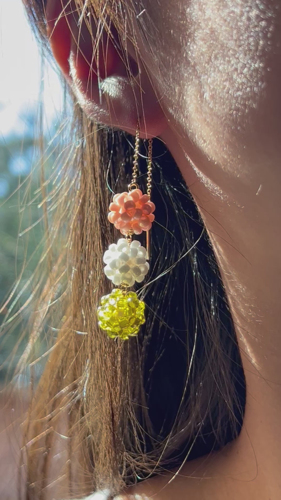🍡Large Dango (団子) Beaded Threader Earrings, 14K Gold Fill