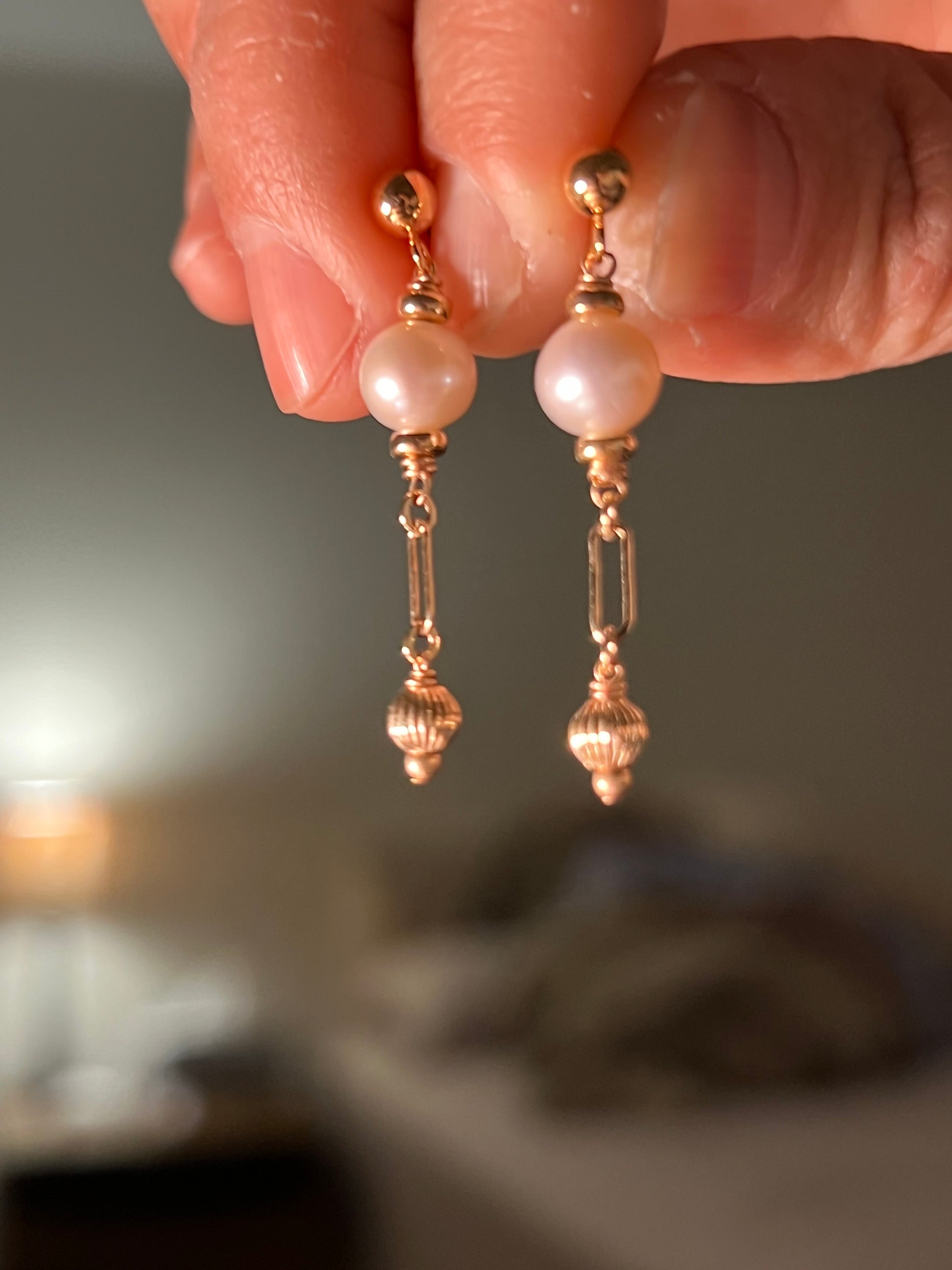 Dainty Pearl and rounded disk bead with corrugated ball round ball post earrings