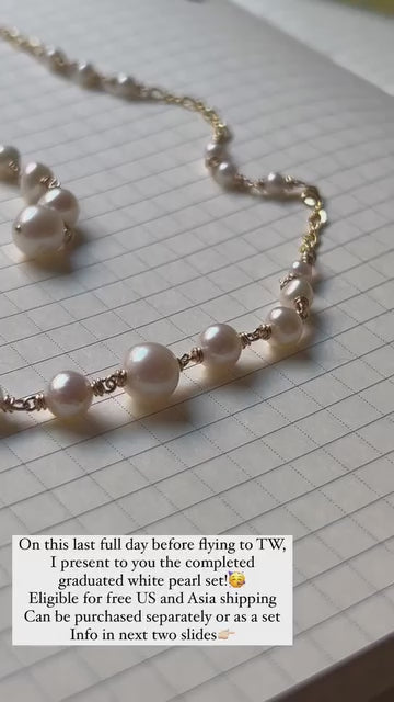Five pearl graduated and petit pearl trio satellite necklace with figure 8 chain, 15+3”