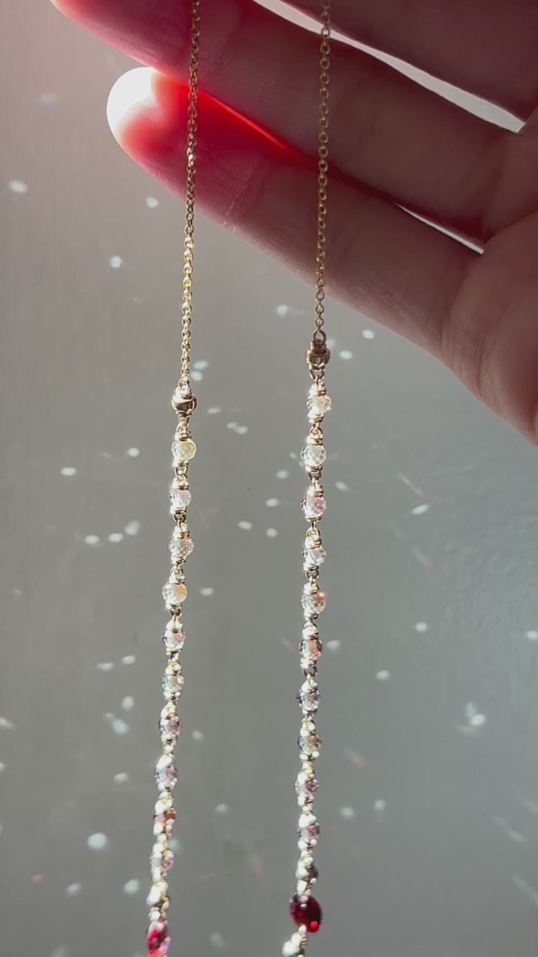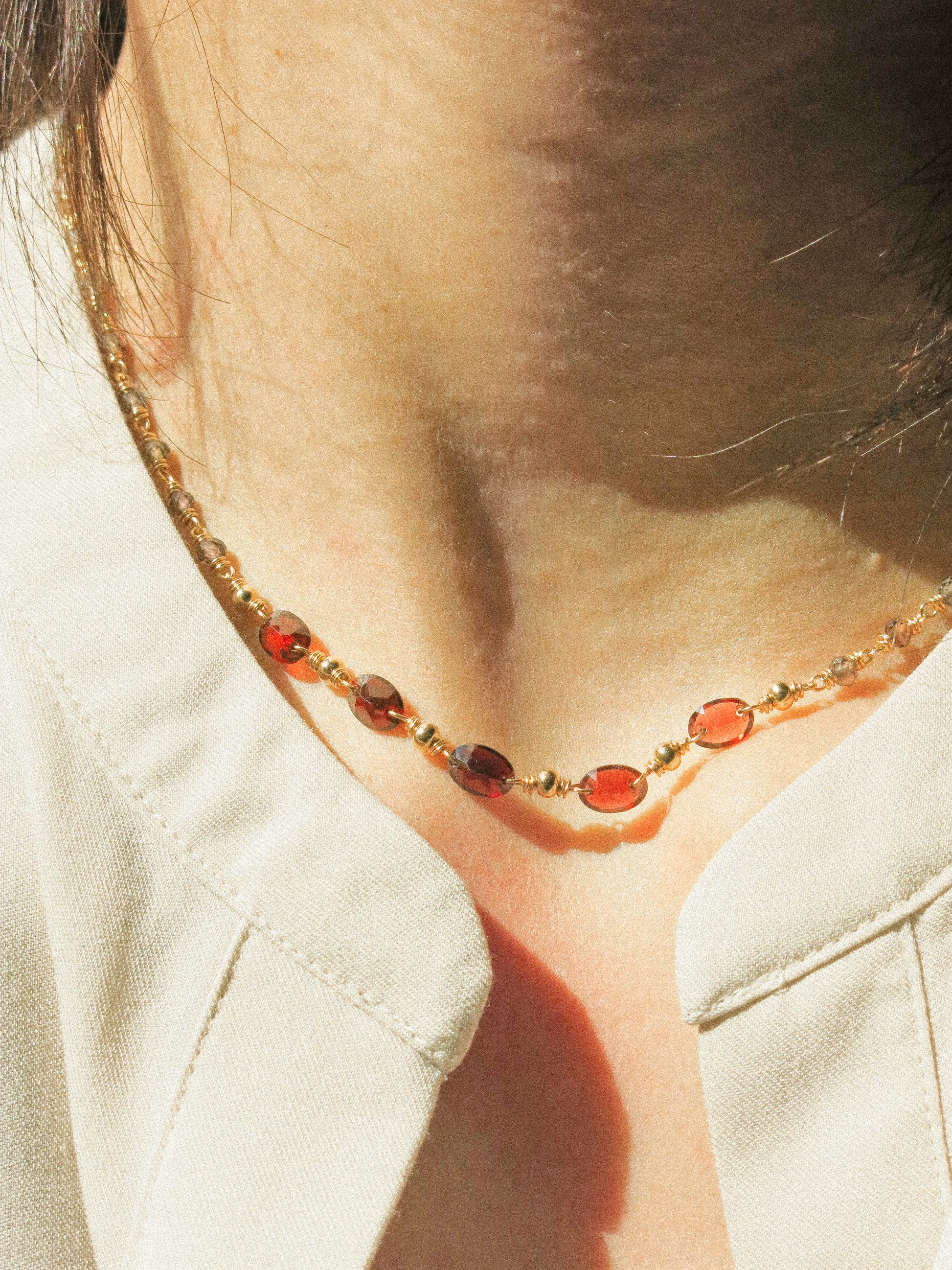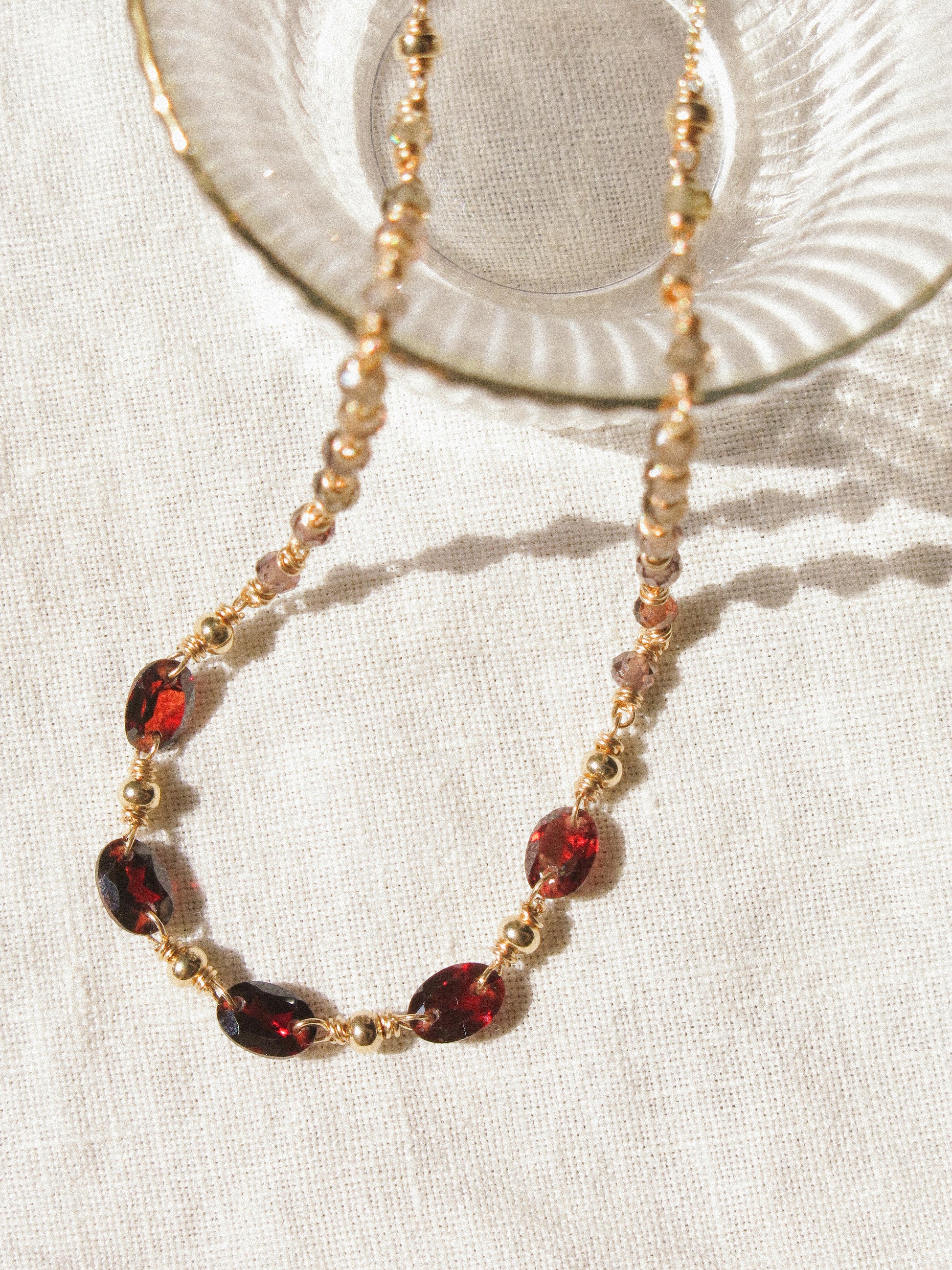 Delicate Choker Necklace with Faceted Oval Mozambique Garnet and AAA Ombré Tundra Sapphire, 14K Gold Fill