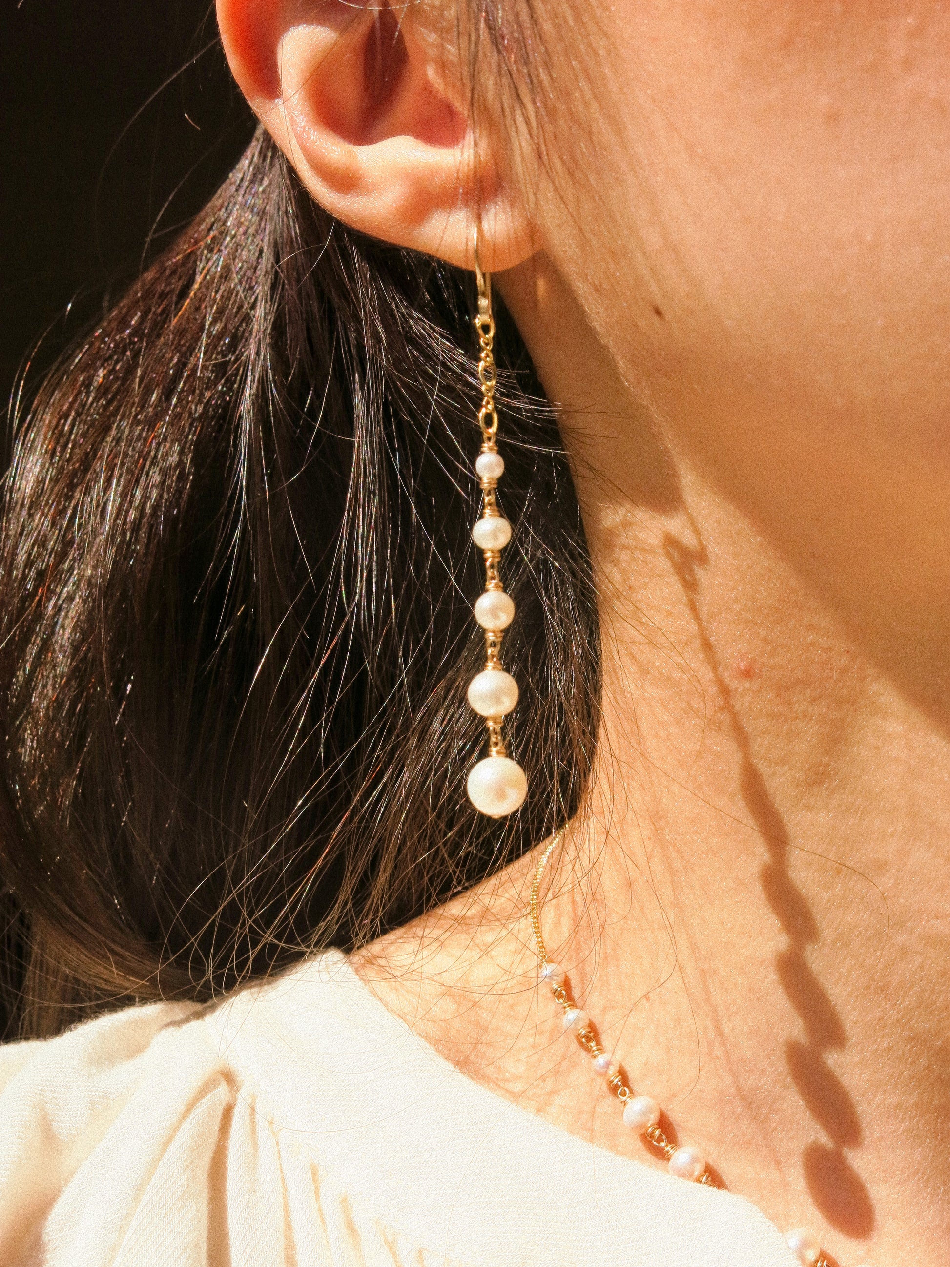 A classic white pearl delicacy for your ears. Effortless with your movement.