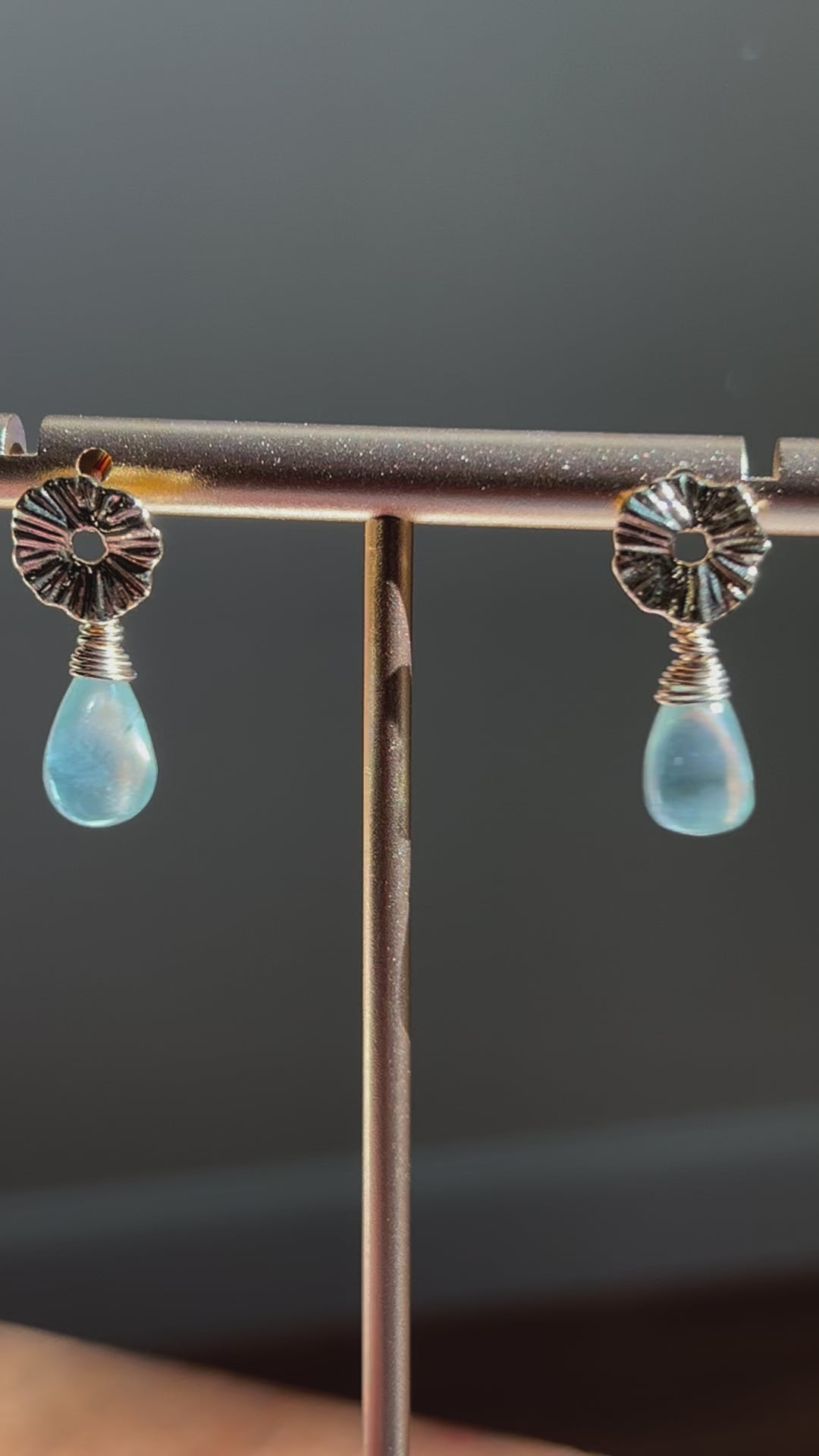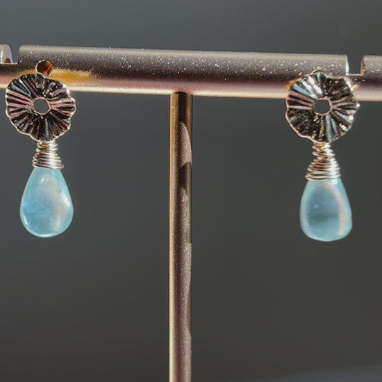Lily Pad Circle Post Earrings with Smooth Prehnite Drops, 925 Sterling Silver Post