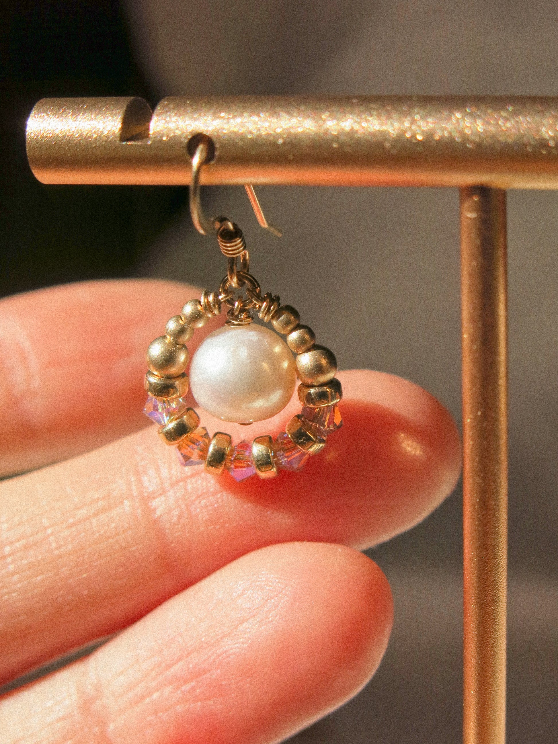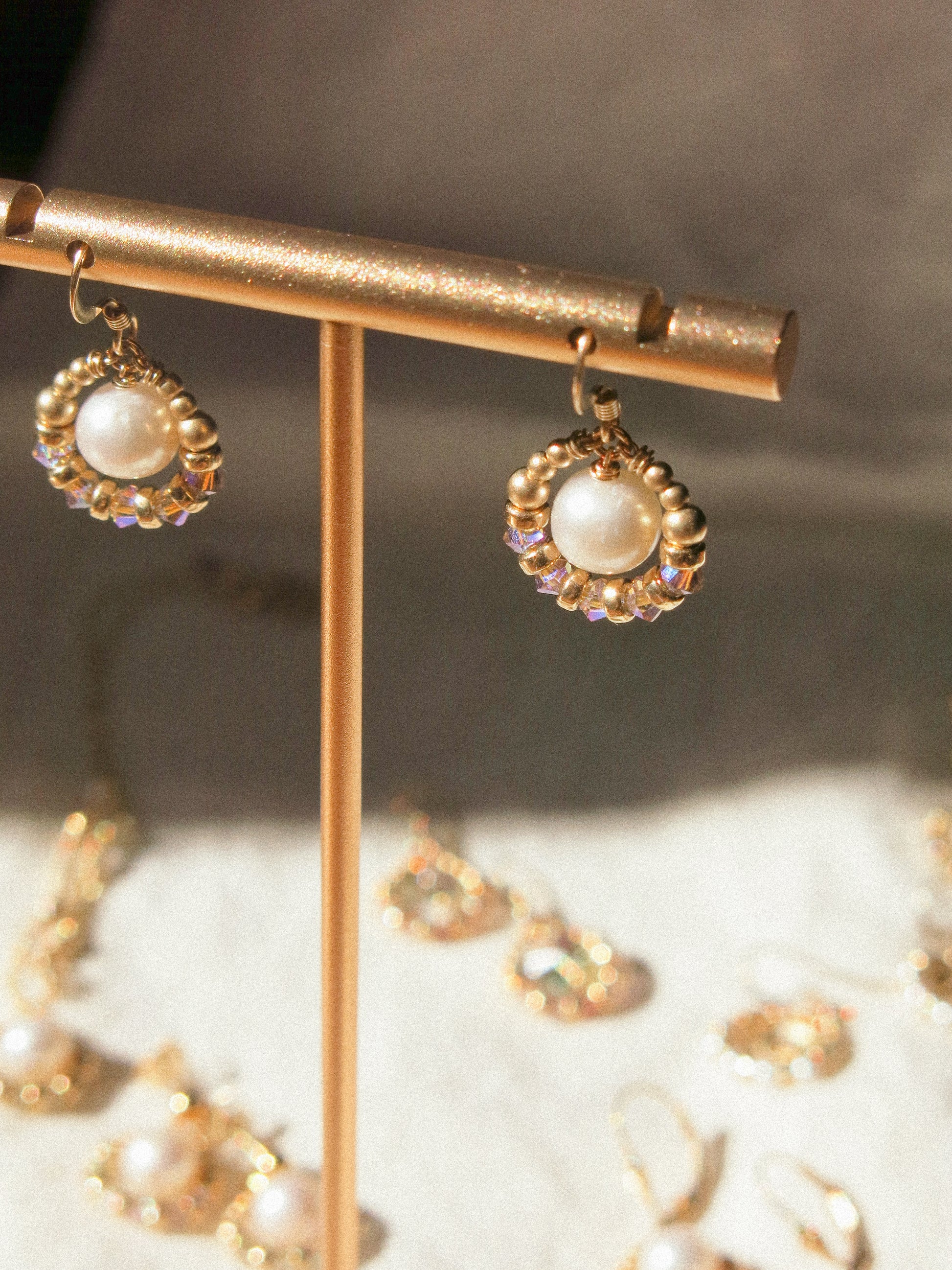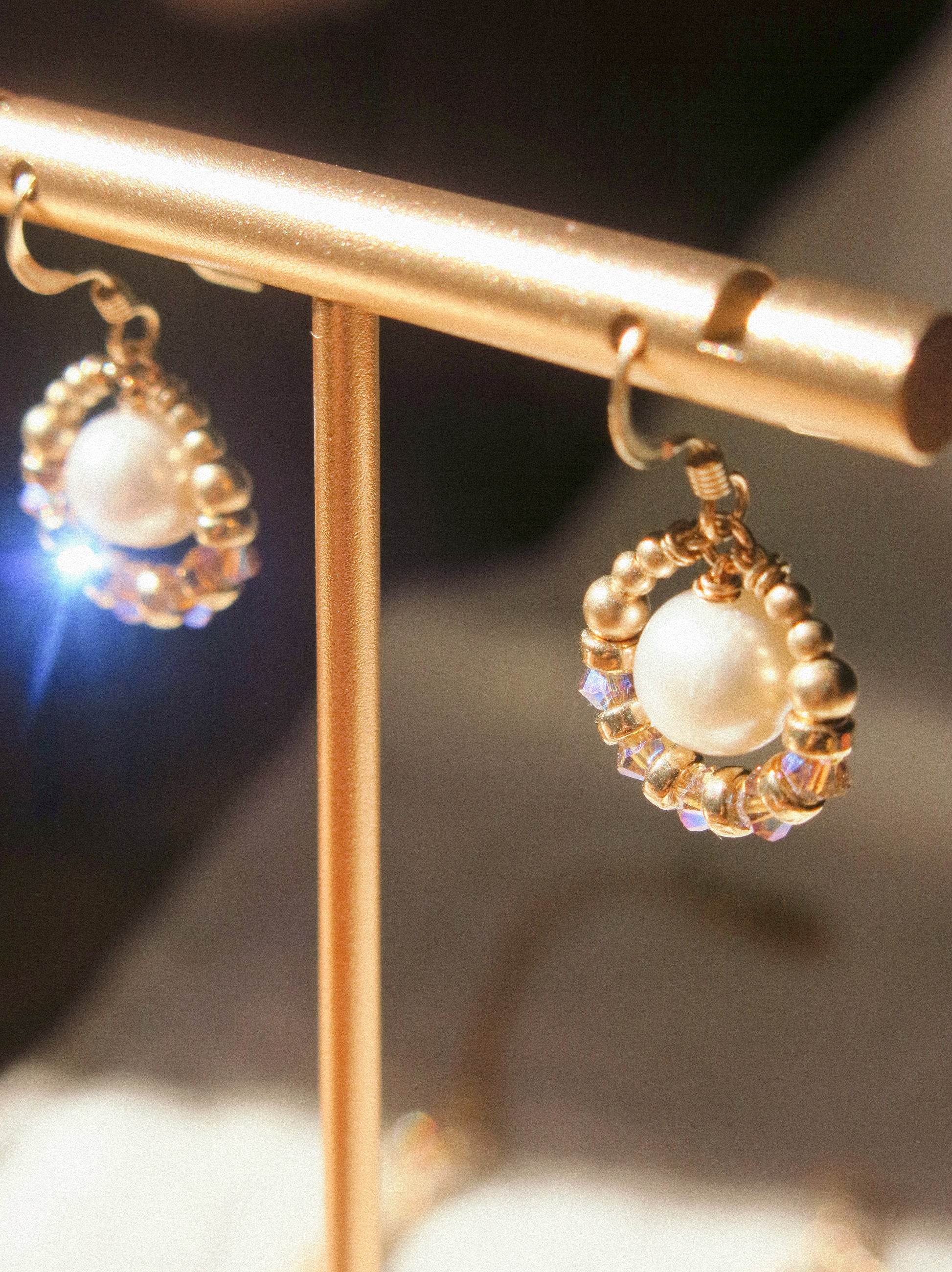 White pearly lusters, glistening sparkles, and warm gold. All in one. Just for your ears.